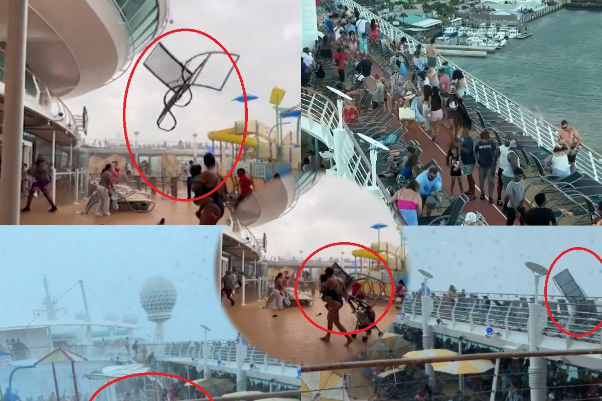 ट्विटर और अन्य सोशल मीडिया जहाज पर आये समुद्री तूफ़ान और लोगों के बीच मचे अफरातफरी का वीडियो पोस्ट किया गया है. वीडियो में यात्रियों और चालक दल के सदस्यों को क्रूज जहाज पर लाउंज कुर्सियों, छतरियों और अन्य ढीली वस्तुओं से बचते हुए और दीवारों को पकड़ते हुए दिखाया गया है. एक वीडियो में देखा गया कि एक महिला छोटे बच्चे को लेकर तूफ़ान से बचते हुए भागती है, तभी लाउंज की एक कुर्सी उसके ऊपर से उड़ते हुए जाती है. यात्री पूल के किनारे आराम कर रहे थे तभी तेज हवाओं और भारी बारिश ने 15-डेक जहाज को टक्कर मार दी.