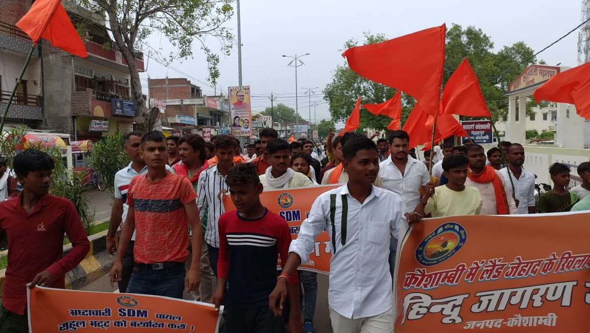 कौशाम्बी। चायल तहसील में कई हिंदुओं की जमीन में लगातार वर्ग विशेष के लोगों द्वारा कब्जा किया जा रहा है। इन कब्जों में चायल उप जिलाधिकारी की मिली भगत का आरोप लगाते हुए हिंदू जागरण मंच के सैकड़ों कार्यकर्ताओं ने मंझनपुर चौराहे से निकल कर जिला कलेक्टर कार्यालय तक मार्च किया। इस दौरान कार्यकर्ताओं ने एसडीएम चायल राहुल भट्ट मुर्दाबाद के नारे भी लगाए।