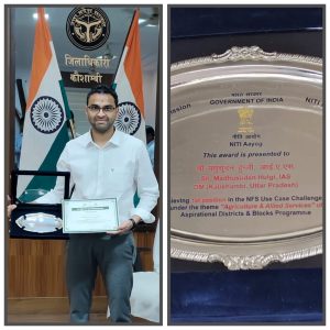 नीति आयोग ने  कौशाम्बी ,जिलाधिकारी मधुसूदन हुल्गी को उत्कृष्ट कार्यों के लिए मिला सम्मान, ₹6 लाख का पुरस्कार भी प्रदान किया गया