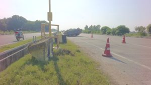 पिता की अस्थियां विसर्जित करने जा रहे परिवार की कार हाइवे पर पलटी,चालक सहित तीन घायल